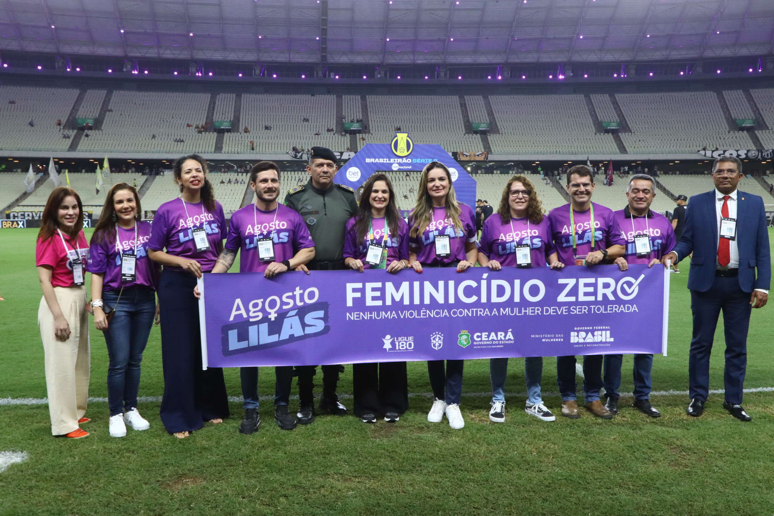 Na noite da última segunda-feira (26), a Secretaria da Diversidade (SEDIV) marcou presença na Arena Castelão para apoiar a campanha #EuLigo180, uma iniciativa do Governo do Ceará em alusão ao Agosto Lilás. Em parceria com a Secretaria das Mulheres, o Ministério das Mulheres, a CBF e a Federação Cearense de Futebol (FCF), a ação tem como objetivo conscientizar sobre a importância de denunciar e combater a violência contra as mulheres, especialmente em espaços de grande visibilidade e com público majoritariamente masculino.